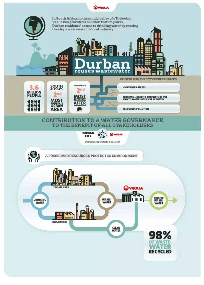 Improving the local population’s access to drinking water and reusing the city’s wastewater for local industry is the virtuous solution for adapting to climate change that Veolia has implemented in Durban under a public-private partnership (PPP), the first such contract signed in South Africa.